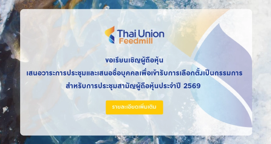 เรามุ่งมั่นในการศึกษาและพัฒนาอาหารสัตว์น้ำ ที่มีความยั่งยืนของห่วงโซ่อุปทาน และให้คำมั่นสัญญาที่จะลดผลกระทบด้านสิ่งแวดล้อม ซึ่งอยู่บนพื้นฐานของกฎหมาย รวมทั้งส่งเสริมและยกระดับความเป็นอยู่ของสังคม
