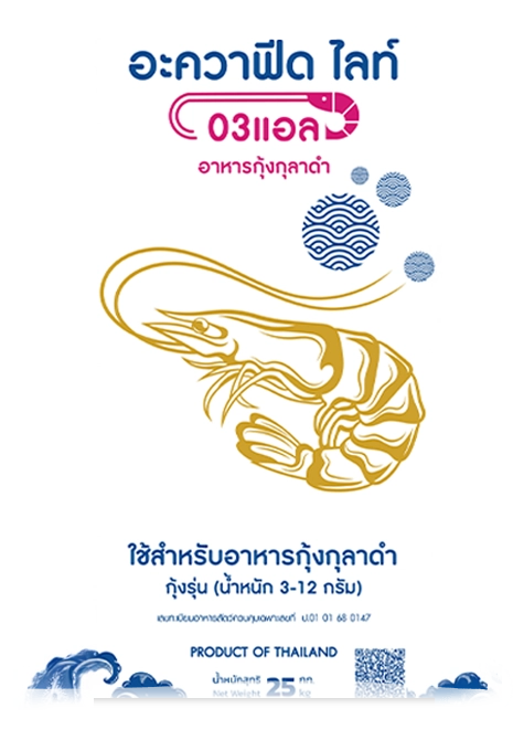 Since the giant tiger prawn is a species of shrimp that needs high protein to help increase the growth, that is, protein must not be less than 35.0 - 38.0 percent, depending on the size of the shrimp. The company has 3 types pf giant tiger prawn feed, namely, (1) Premium (2) Standard and (3) Fighting Brand of which the sources of raw material are different and affect the average daily growth rate (ADG) and the feed conversion ratio (FCR) of shrimp, which is an important factor in buying shrimp feed.